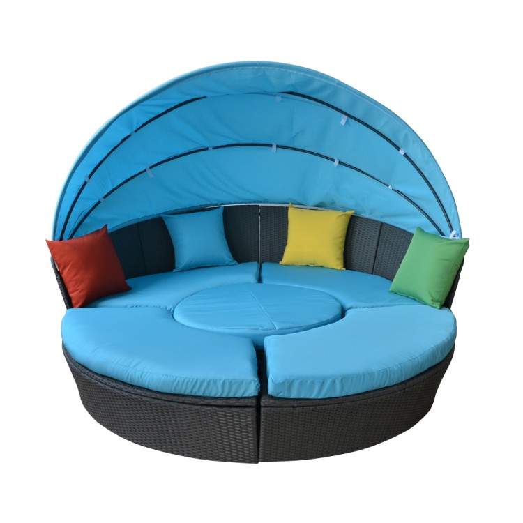 Круглая пляжная кровать-трансформер из искусственного ротанга. Каркас изделий изготовлен из высокопрочного алюминия, что гарантирует продолжительный срок службы. Комплектуется подушками со съемными чехлами для максимально удобного очистки от загрязнений. Ручное плетение делает неповторимым и уникальным каждое изделие.
