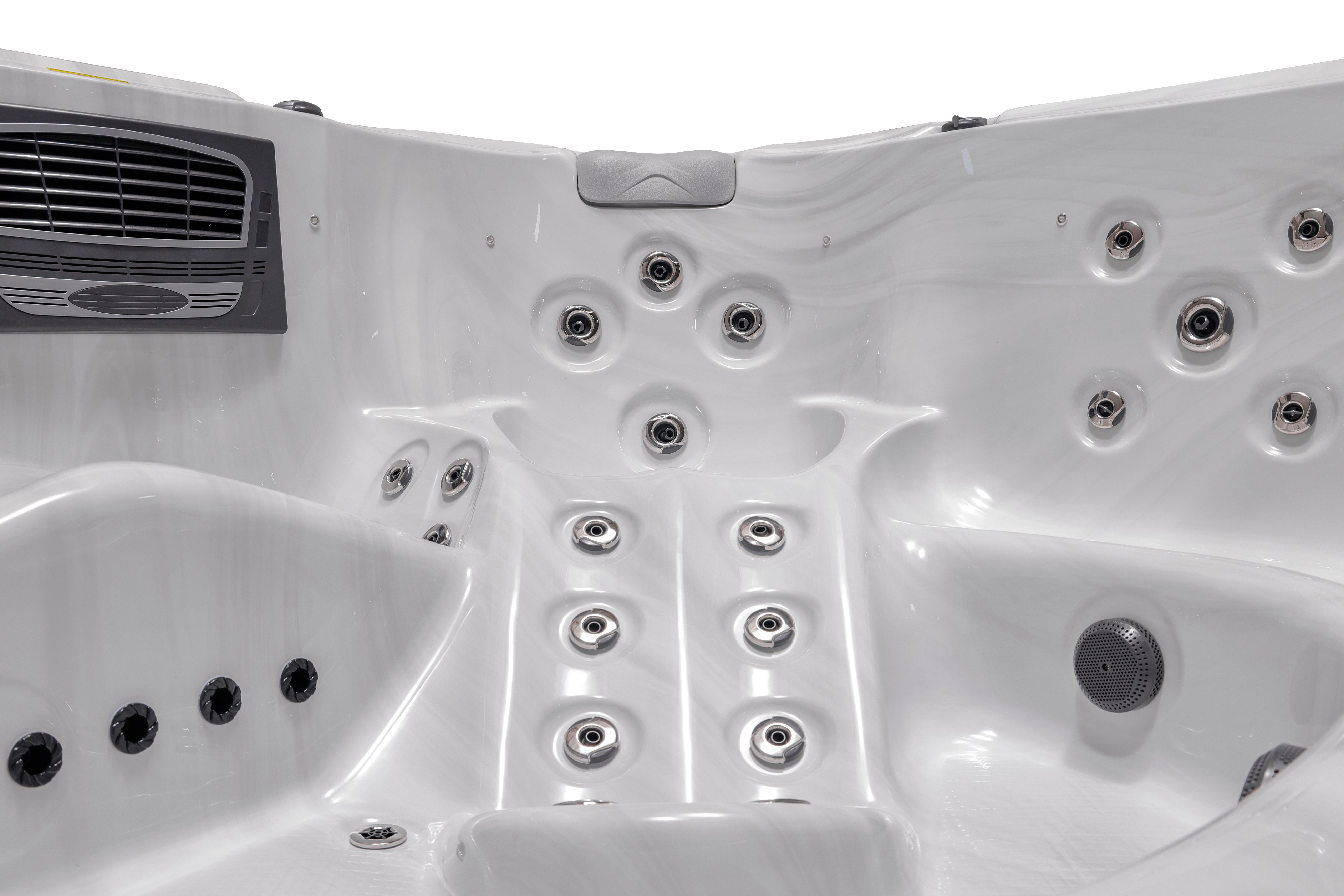 Meyli оснащен 66 воздушно-водяными форсунками и 12 дополнительными аэро-форсунками (опционально), которые создают невероятный массажный эффект для полного расслабления всех групп мышц. Просторная эргономичная конструкция с восемью посадочными местами и четырьмя подголовниками обеспечивает максимальный комфорт для большой компании.